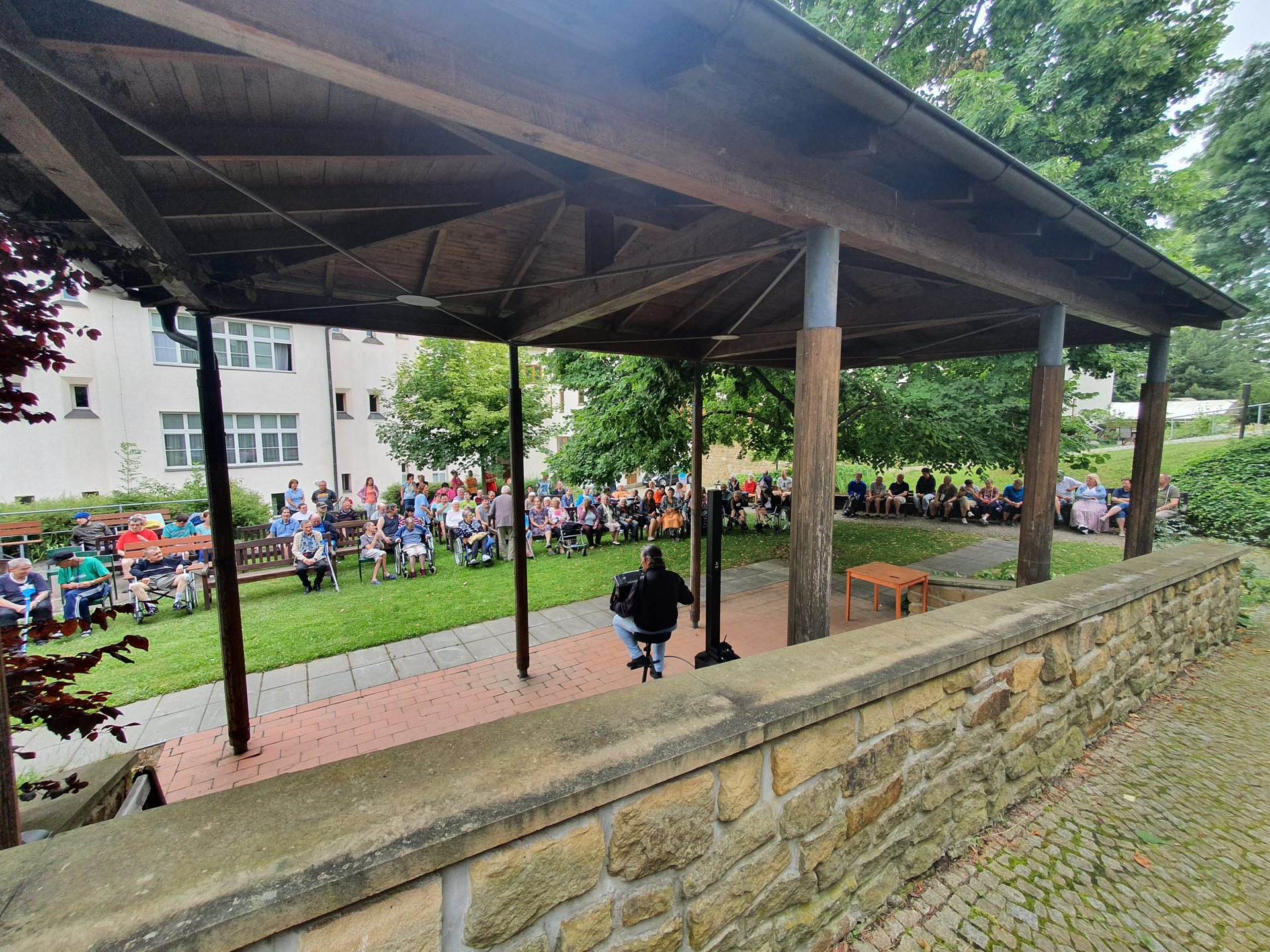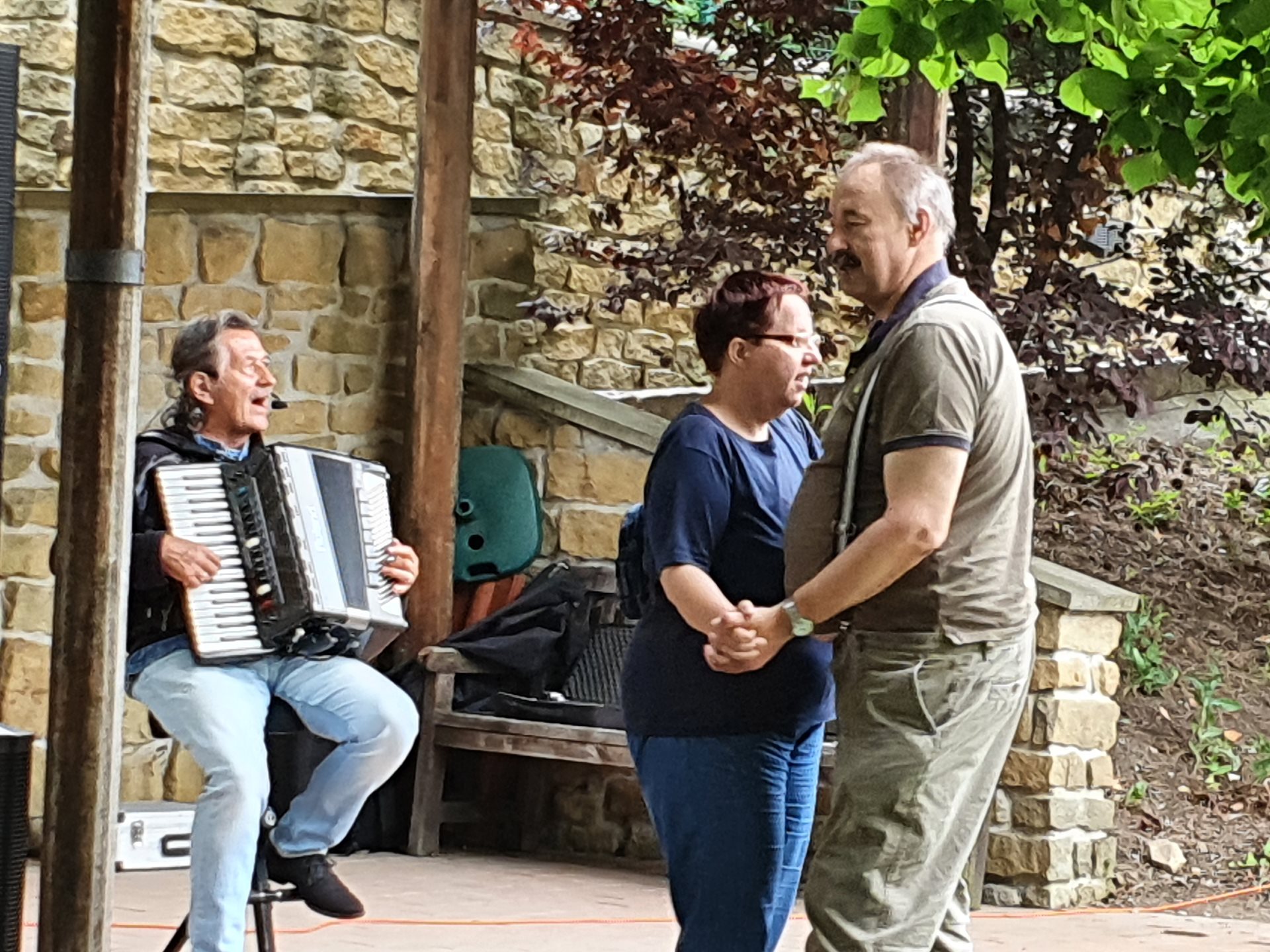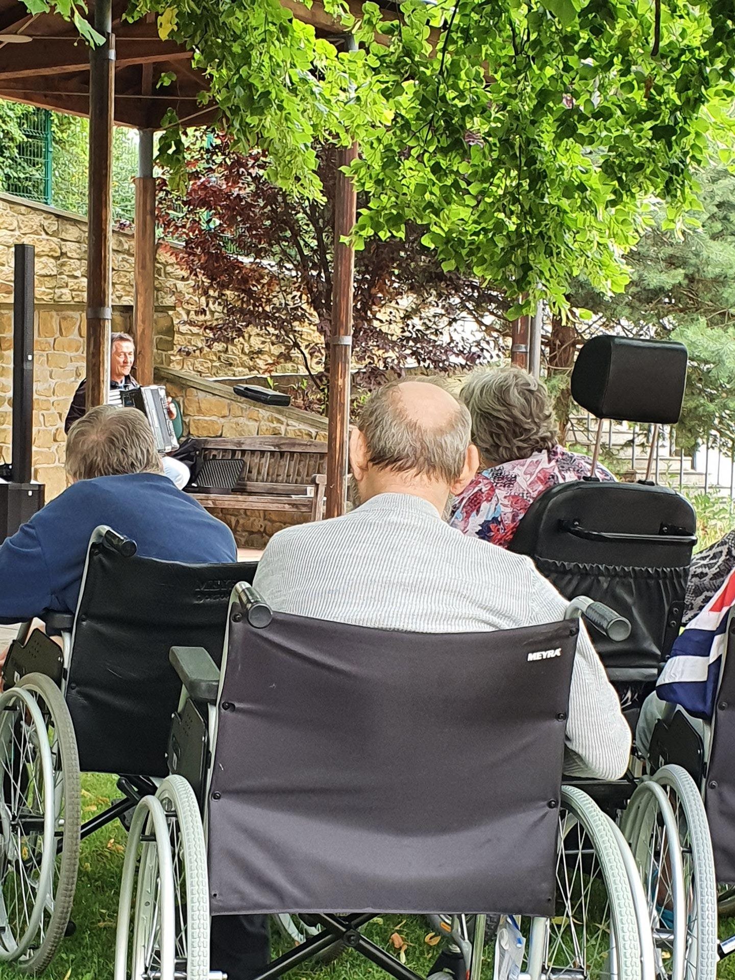 Na vystoupení Pepy Matury v naší zahradě nám přálo štěstí. I přes deštivou předpověď počasí jsme ho zvládli v suchu. A stálo to zato. Tančilo se, zpívalo... Už se těšíme na příště.