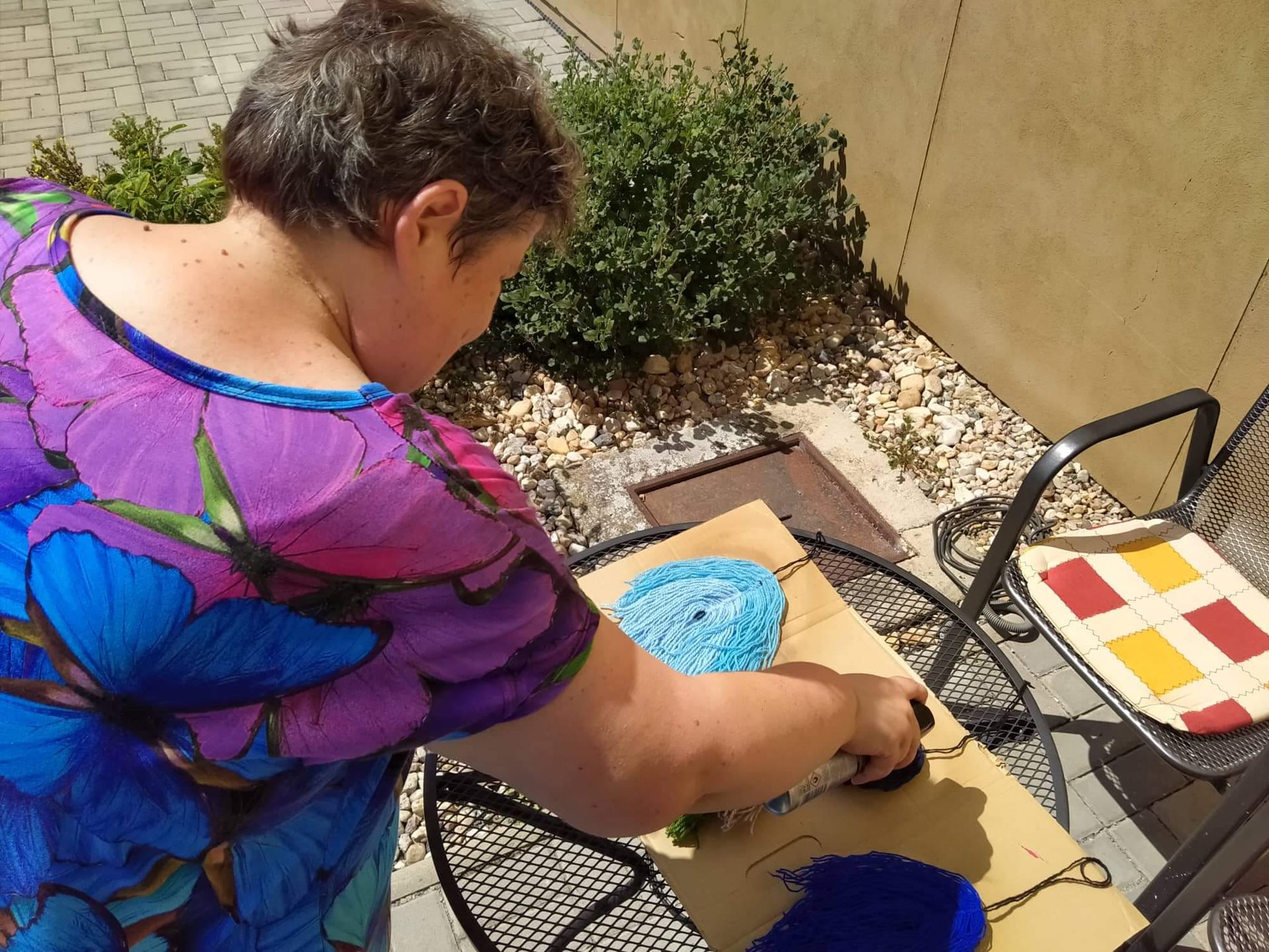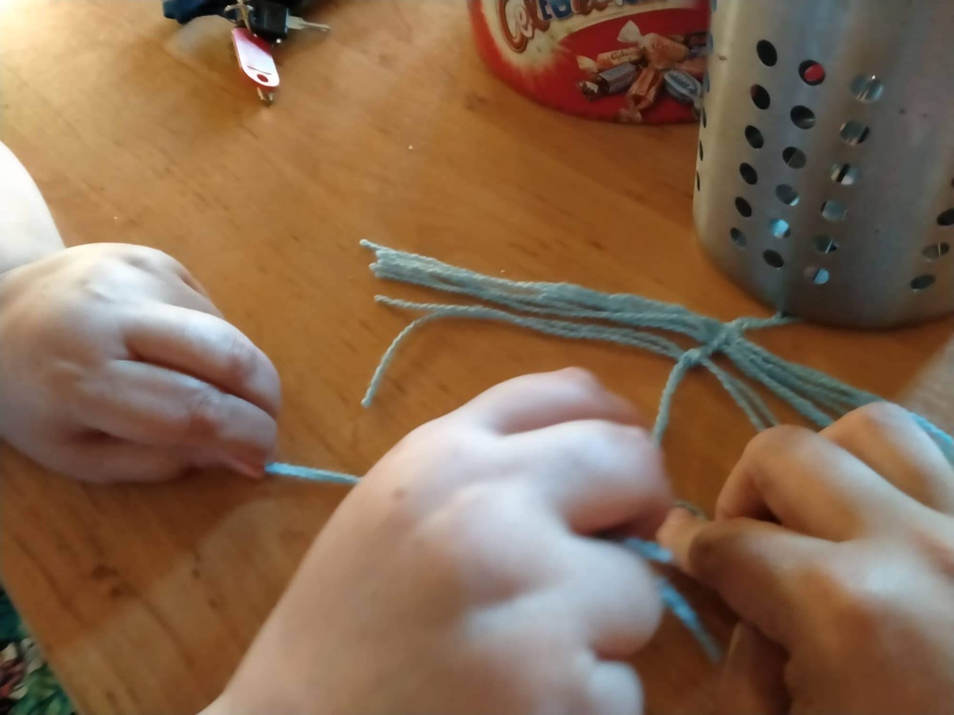 Se Šárkou jsme se naučily novou techniku Macramé, na první výrobky byla velmi šikovná. Brzy si vyzkouší jiný materiál a další výrobky z techniky macramé.