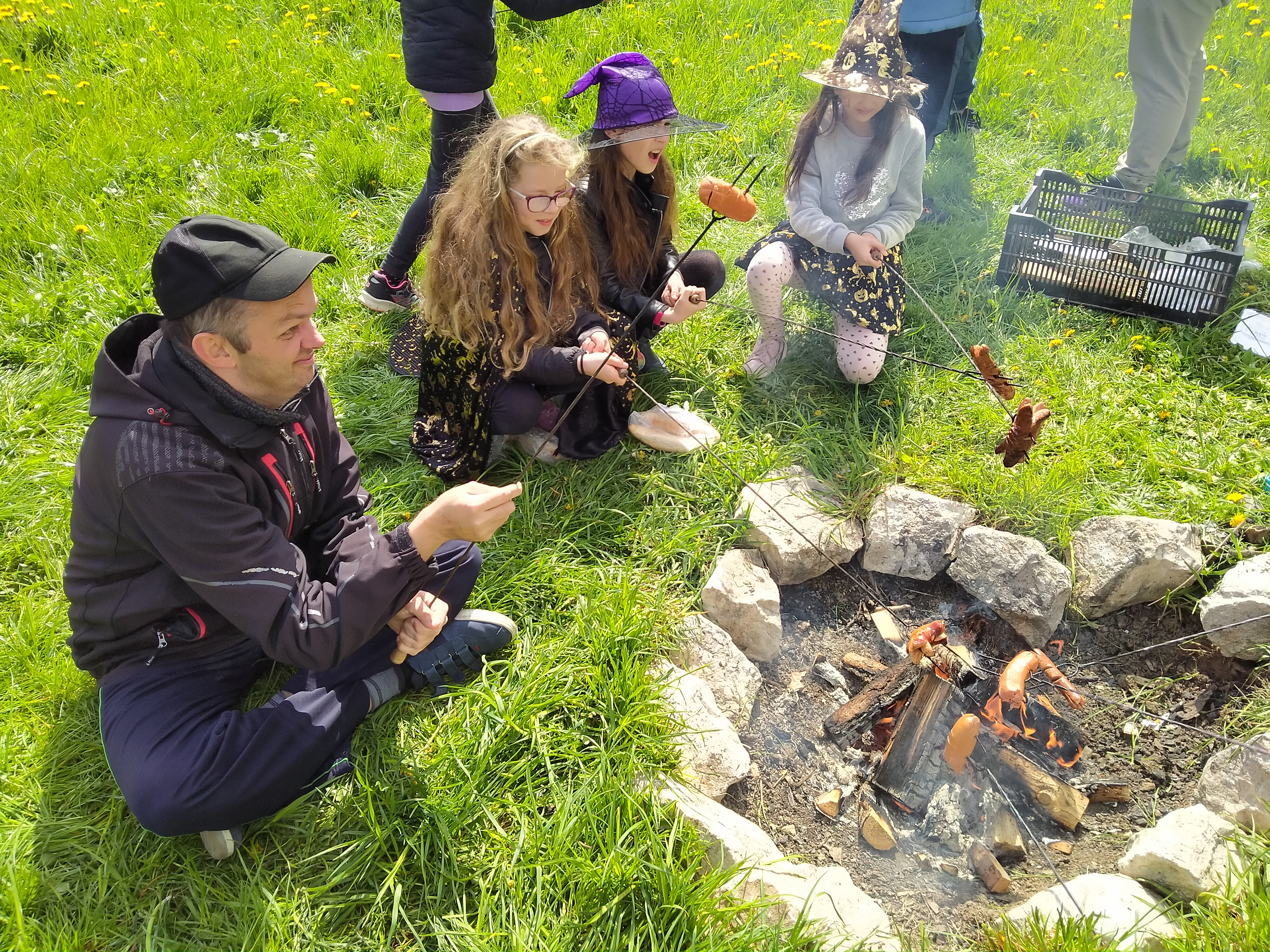 Opět jsme se vydali za našimi kamarády z družiny na základní škole Jana Palacha a tentokráte jsme si udělali odpoledne venku a strašidelné. Opekli jsme si špekáčky a ochutnali, hady, pavouky a žáby.