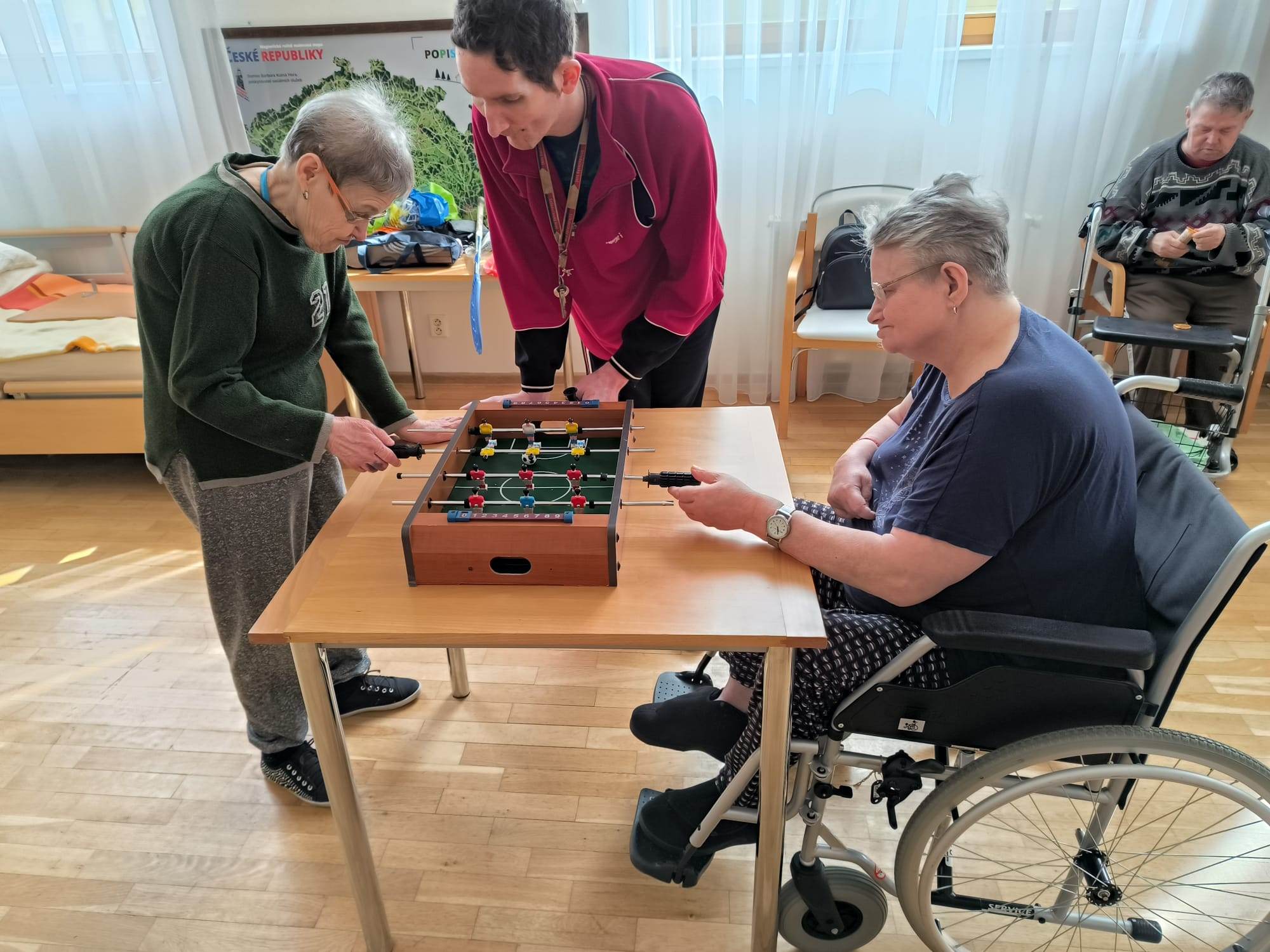 Během sportovního dopoledne jsme si vyzkoušeli basketbal, hokej a hlavně stolní fotbal. Každý se soutěžících si hry náležitě užíval.