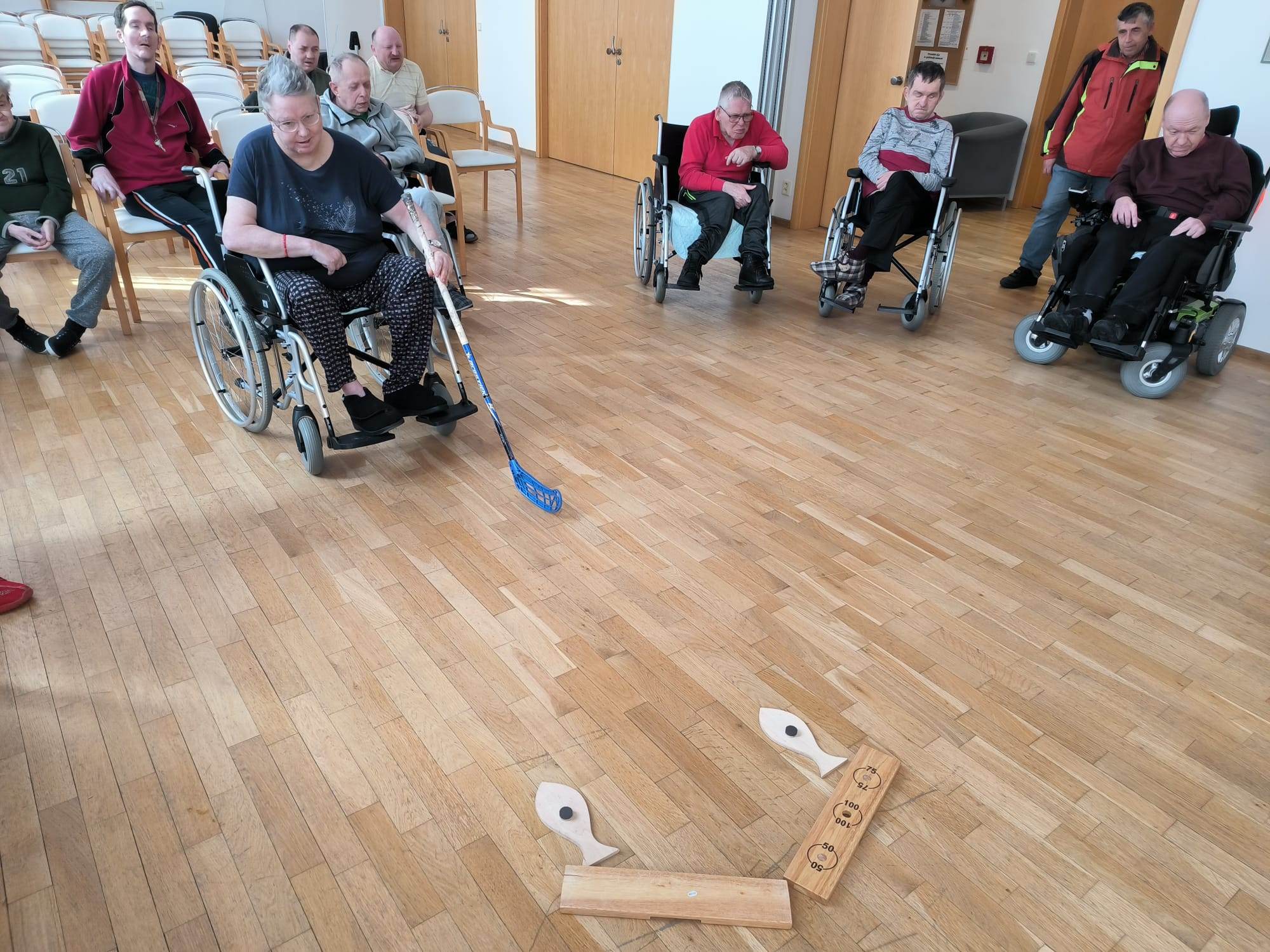 Na sále Domova jsme se ocitli na Divokém západě. Klienti si mohli vyzkoušet lov bizona, sestřelení plechovek, chytání koně do lasa, házení...