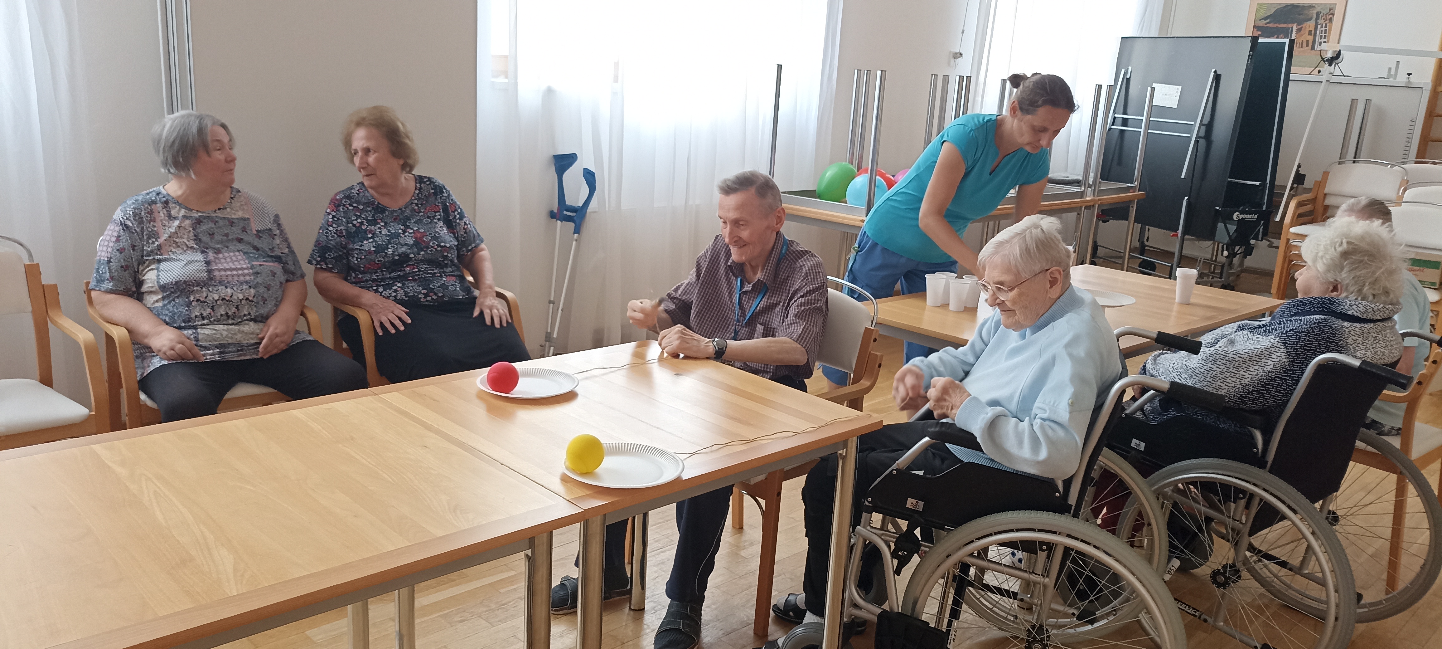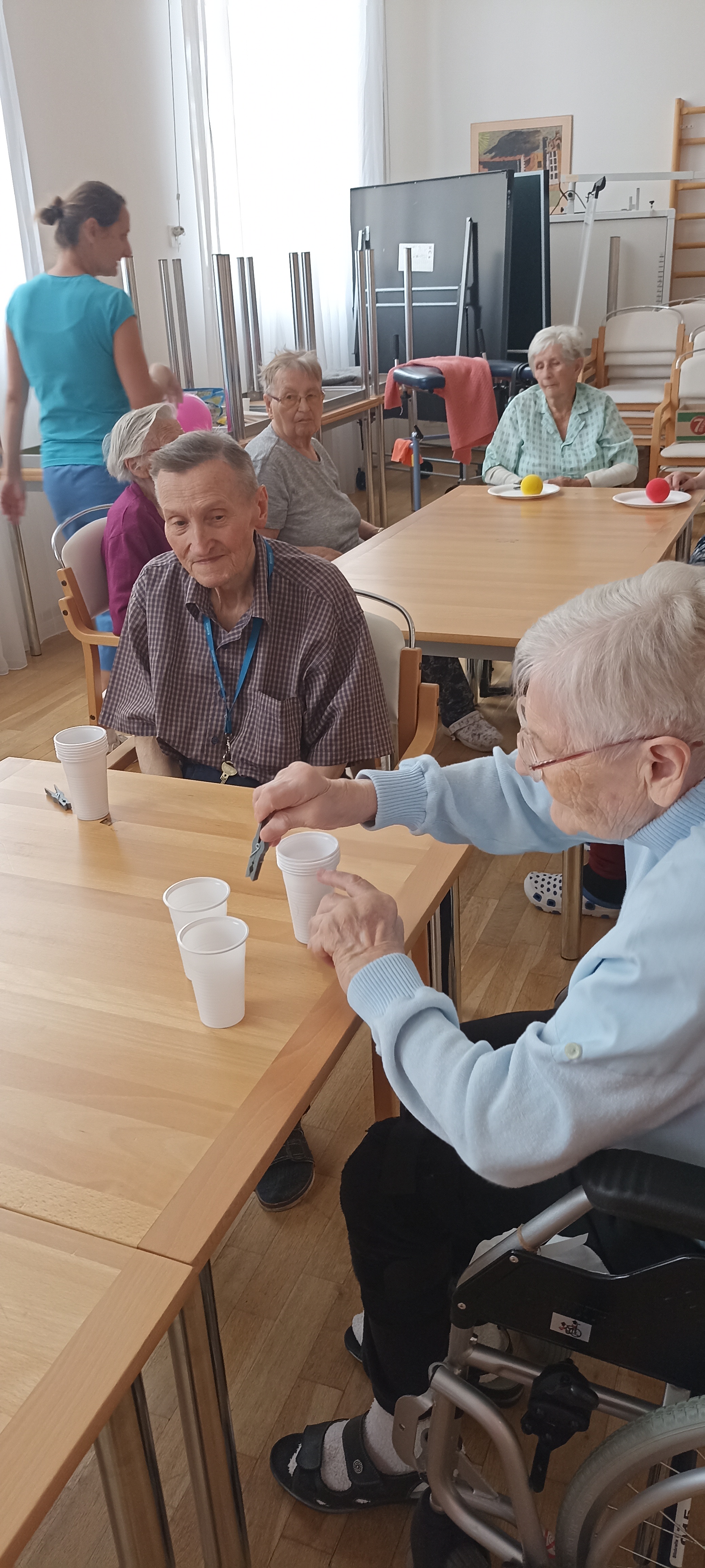 Na sále Domova jsme se ocitli na Divokém západě. Klienti si mohli vyzkoušet lov bizona, sestřelení plechovek, chytání koně do lasa, házení...