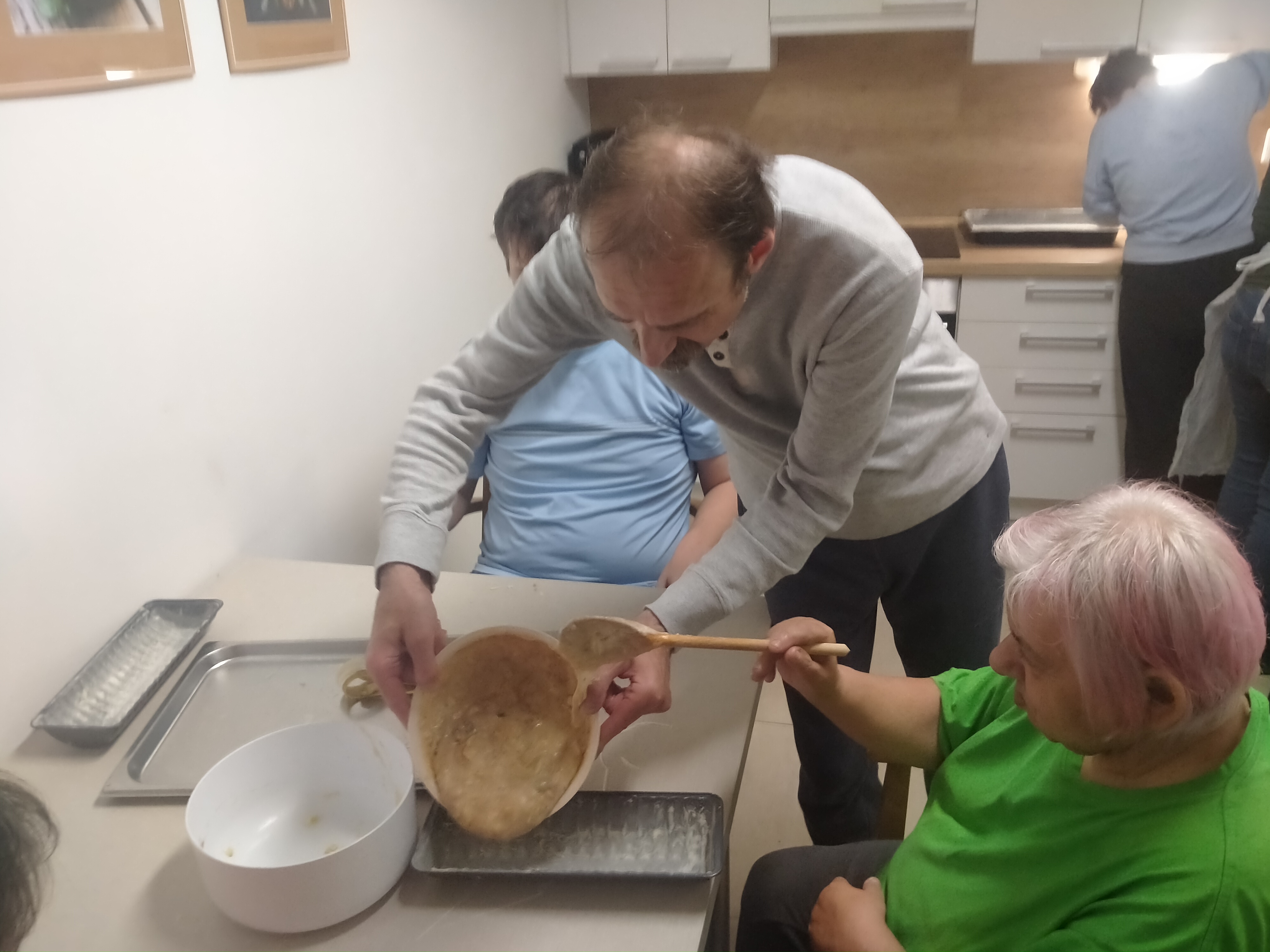 S klienty DOZP B jsme si přes týden upravovali kvásek na Vatikánský chléb – chléb přátelství – štěstí. Klienti se od prvního dne s velkým zájmem zhostili jeho příprav. Velmi je bavilo každý den s těstem něco dělat a poslední den pečení si náležitě užili. Druhý den jsme jej rozdali po Domově. Klienti byli za svou práci chváleni a to je velmi těšilo.