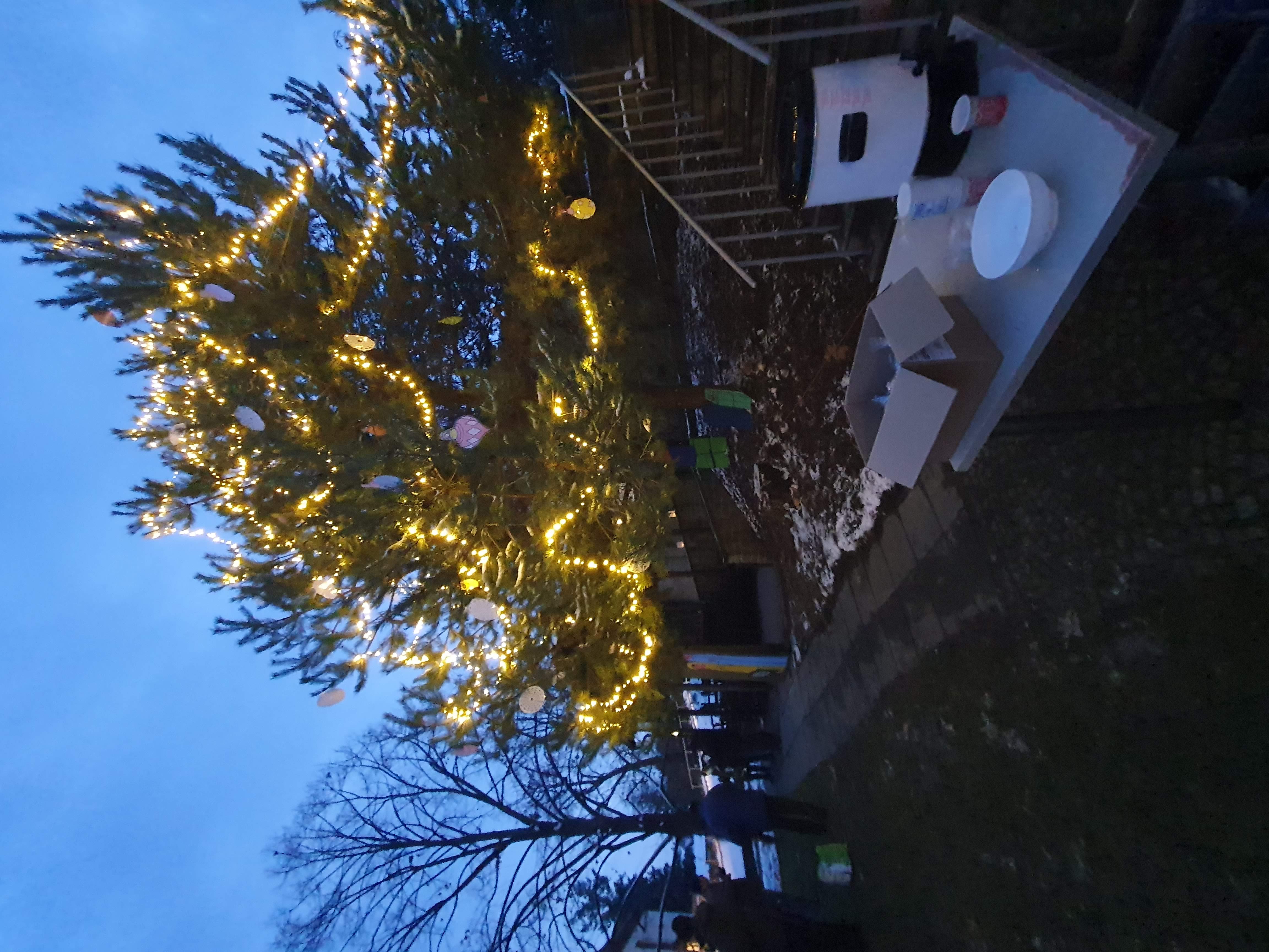 Vánoční strom v naší zahradě už krásně svítí a přináší nám sváteční atmosféru.