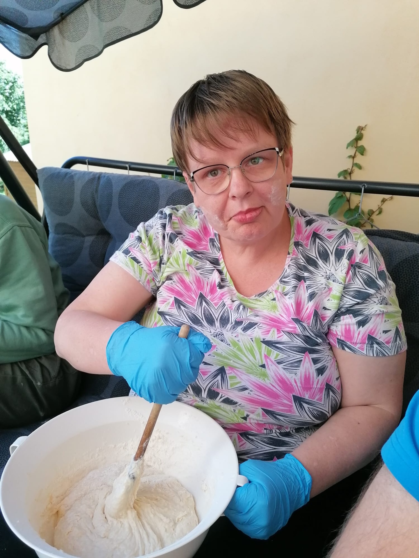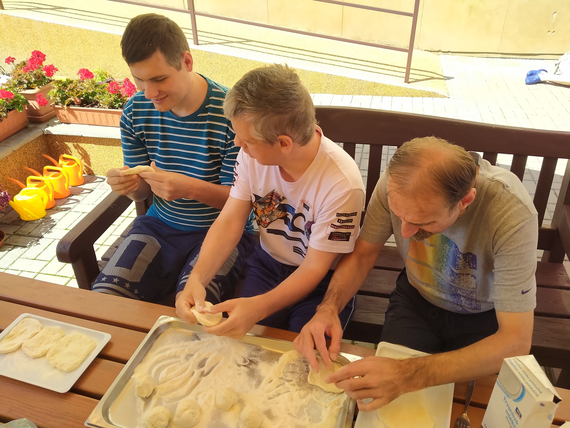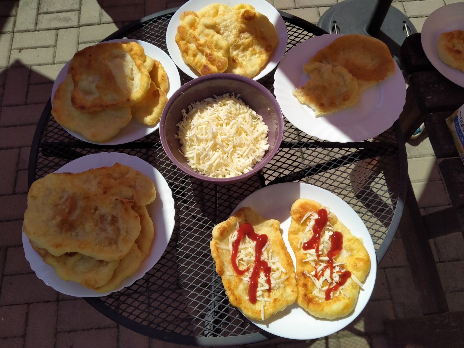 Jak jen to jde využíváme naší letní kuchyně a dnes tomu nebylo jinak. Langoše milujeme a jelikož jsme již sehraná parta kuchařů, tak jsme si rozdělili práce a hned nám to šlo lépe od ruky. Jen smažení jsme přenechali naší paní pečovatelce, bylo to celkem rychlé a aby nebylo nic připálené, musely přijít na řadu šikovnější ruce.