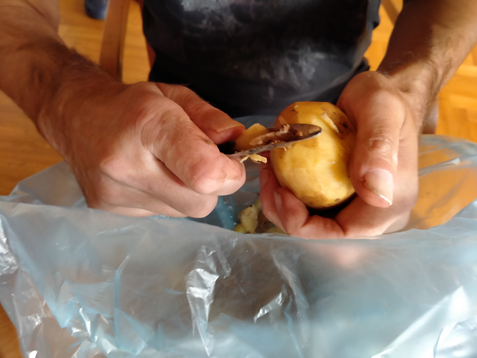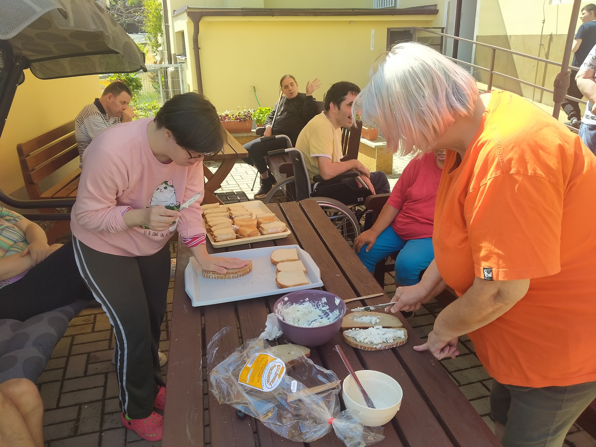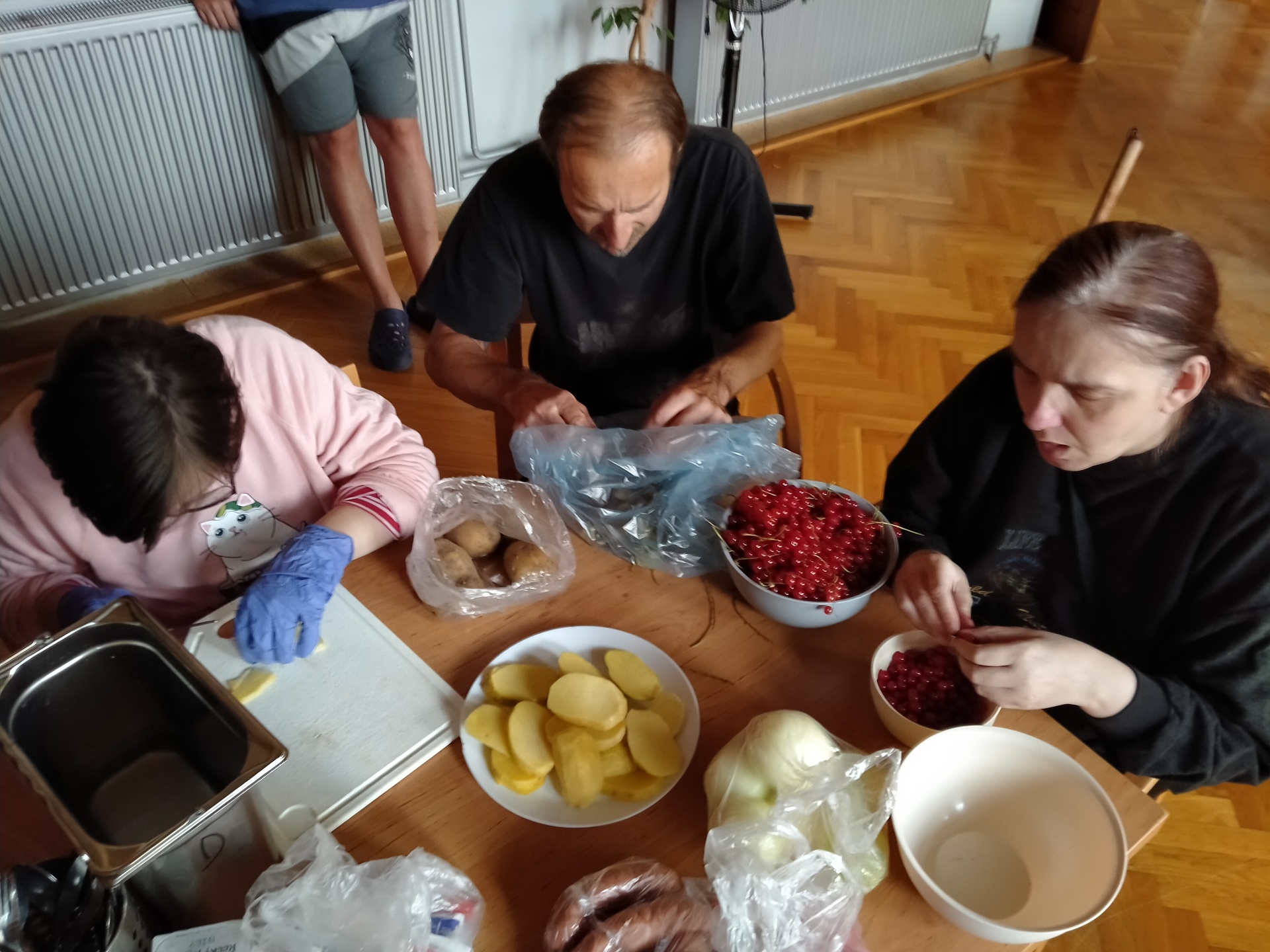 Jak jen to jde využíváme naší letní kuchyně a dnes tomu nebylo jinak. Langoše milujeme a jelikož jsme již sehraná parta kuchařů, tak jsme si rozdělili práce a hned nám to šlo lépe od ruky. Jen smažení jsme přenechali naší paní pečovatelce, bylo to celkem rychlé a aby nebylo nic připálené, musely přijít na řadu šikovnější ruce.