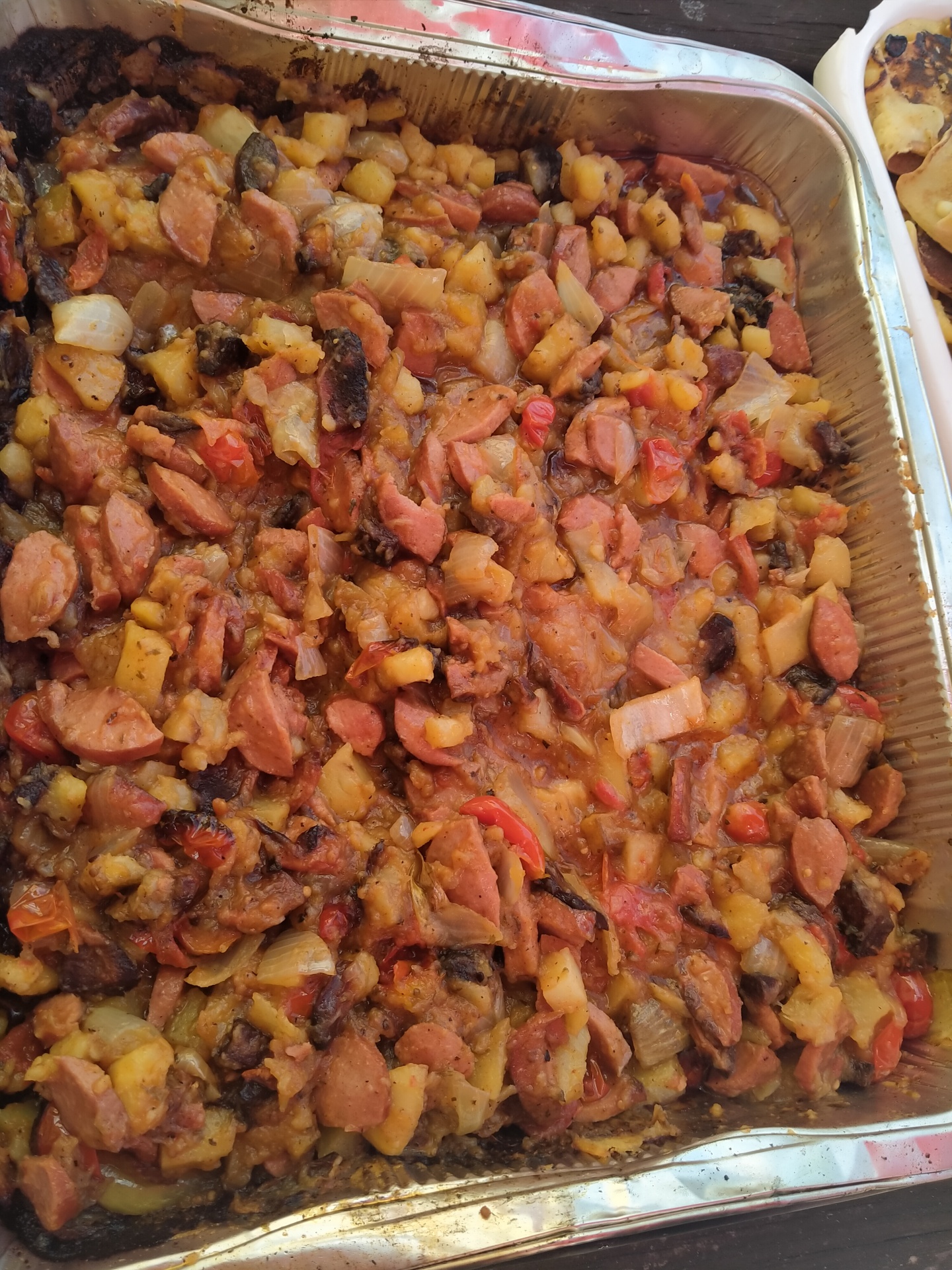 Tak tyhle zapečené brambory jsme jedli prvně. A že to byla opravdu dobrota. Sice jsme se trochu zapotili, než jsme vše nakrájeli a rozdělali oheň, ale pak už to bylo jen krásné čekaní. Vůně během pečení napovídala, že jídlo bude opravdu jedinečné. Opětovné rozdělení práce bylo samozřejmostí. Každý se zapojí jak může- někdo přinese tácky, druhý rozdá lžíce a třetí to může sníst.