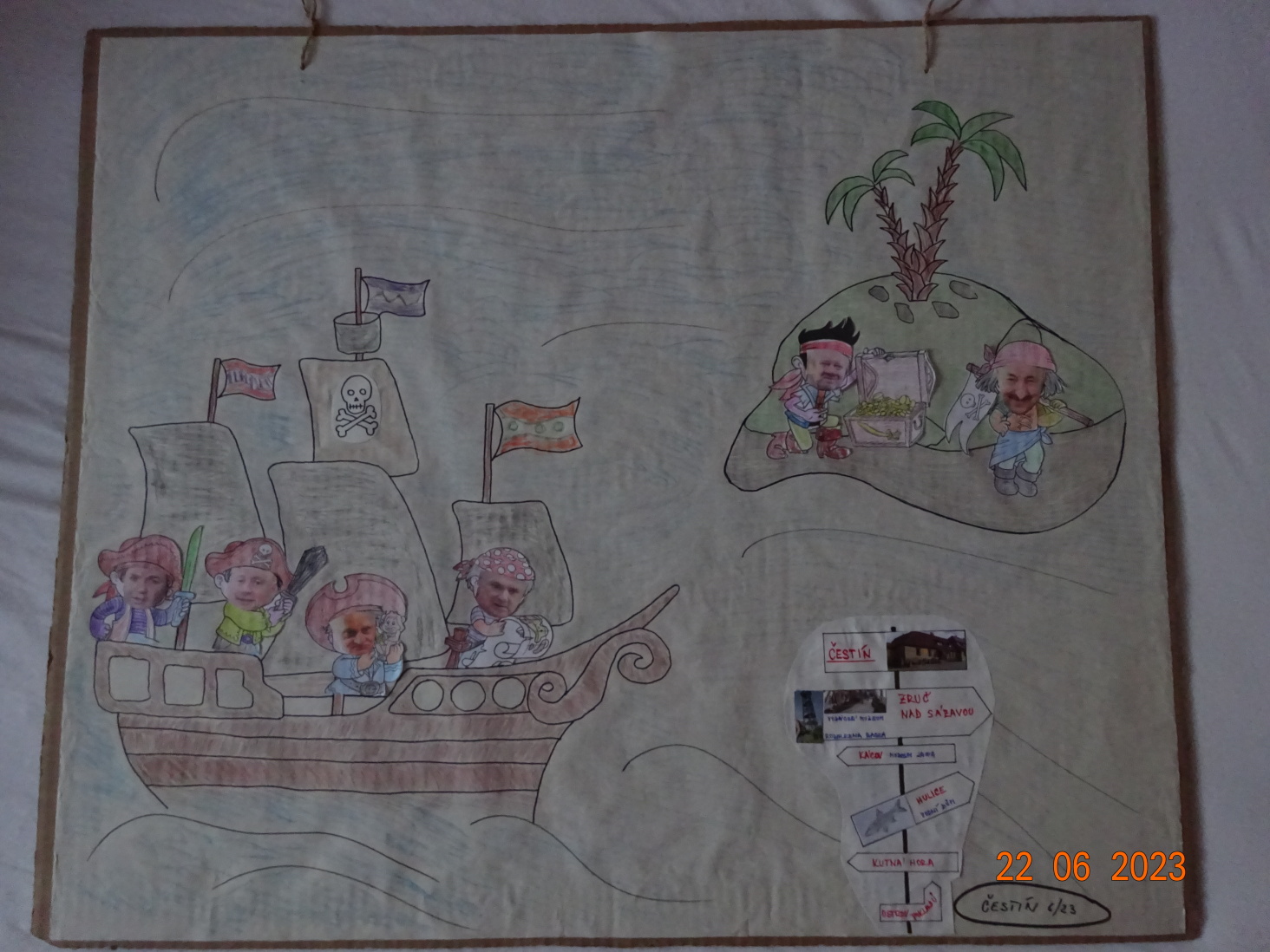 Program našeho pobytu byl pestrý. Po návratu z výletu jsme vždy vyplnili řádek v naší křížovce. Nakonec nám vyšlo v tajence, kde máme uložený pirátský poklad. Pěkné počasí někteří využili ke koupání v místním bazénu. Hráli jsme stolní hry, skládali puzzle, luštili obrázkové sudoku nebo jen poseděli a povídali si. Každý den jsme také pracovali na našem pirátském tablu. Bude nám připomínat příjemný týden strávený v Čestíně.