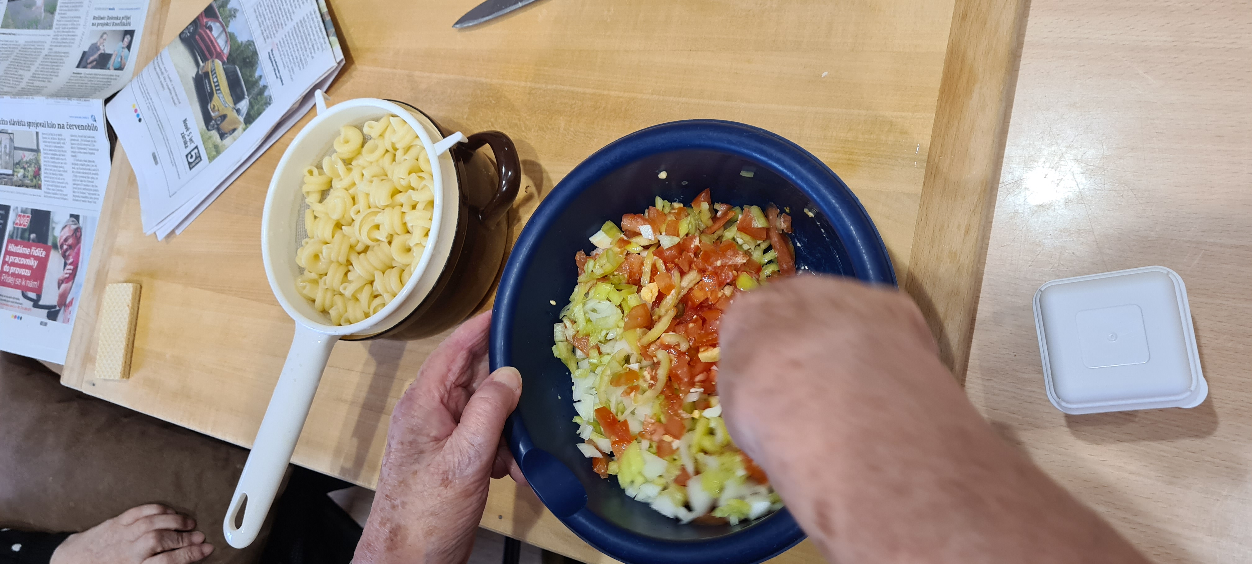 Zeleninový salát z barborské zahrádky byl výtečný. Sami jsme si vypěstovali rajčata i papriky.