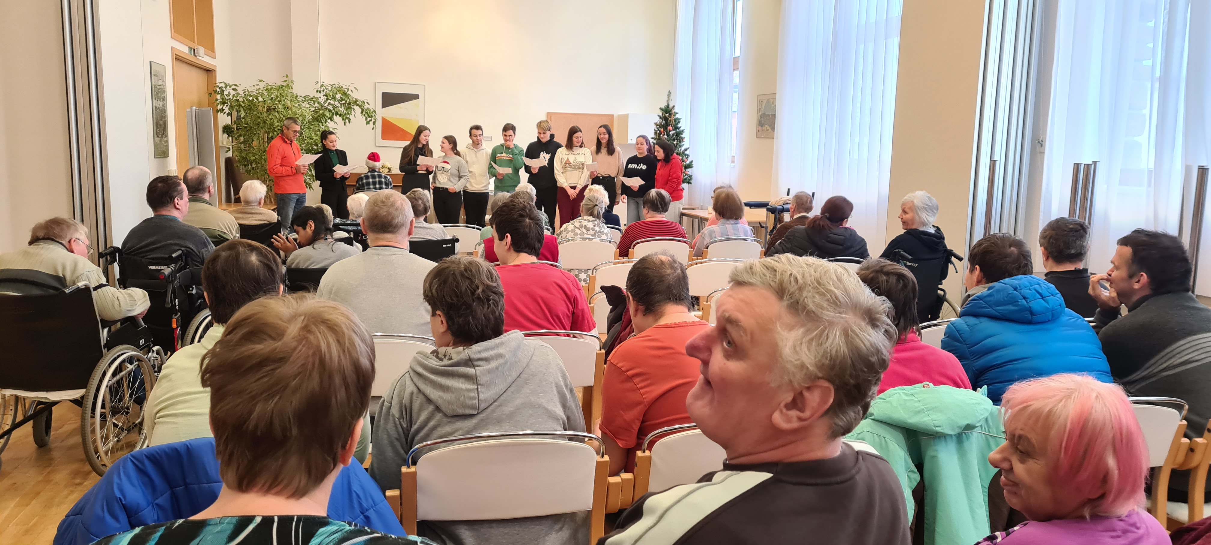 Studenti Gymnázia Jiřího Ortena nám přišli zazpívat přímo až před pokoj. Zážitek tak měl doslova každý z našich milých obyvatel.