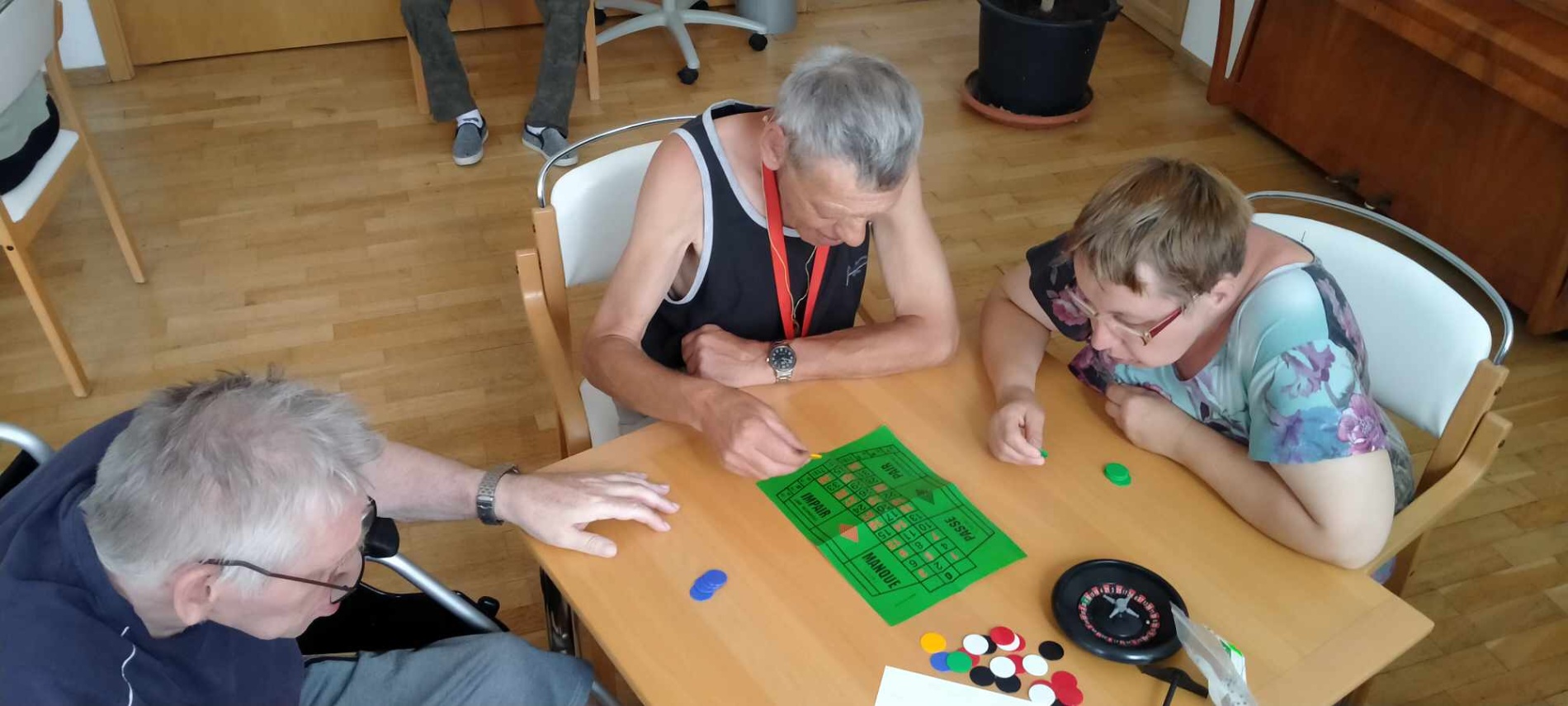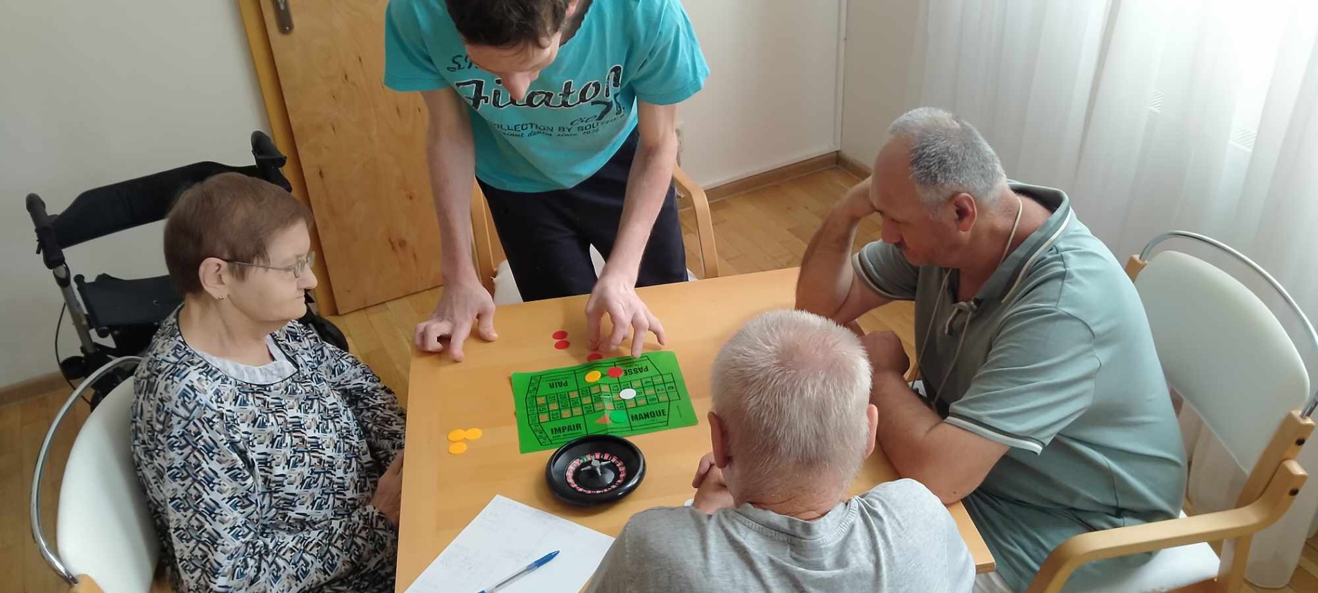 S klienty jsme si zahráli několik společenských her a převážně hazardních. Pro mnohé hráče to byla premiéra. Vyzkoušeli jsem si kulečník, kostky a ruletu. Dále jsme vsadili na staré známé a oblíbené karty a Člověče, nezlob se.
