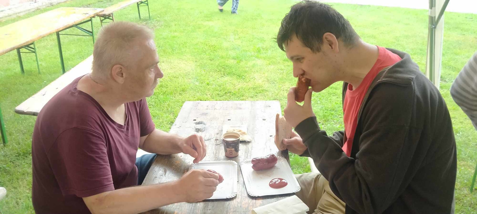 A největší radost nám udělalo bohaté občerstvení, kdy zrak přecházel a my nevěděli, co ochutnat dříve. Jestli klobásy a špekáčky, grilované maso. Velký výběr byl i mezi sladkými pochutinami – Míša řezy, Margot řezy, různé koláčky, štrůdl a mnoho dalšího.